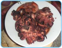 Quand le calamar se fait rare, le poulpe n’est jamais loin pour prendre sa place. Un petit tour dans la sauce, vite au chaud prés des pommes de terre douces et le tour est joué .