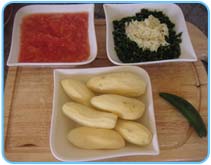 Hachez les échalotes, le persil, le coriandre et l’ail. Emondez et concassez ensuite la tomate, épépinez les piments et coupez-les en petits morceaux, râpez le gingembre, enfin ajoutez un clou de girofle et une c-à-s de Paprika doux.