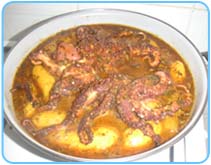 Mettez le tout dans un faitout contenant l’eau dans laquelle le poulpe a été cuit, ajoutez 1 verre d’huile d’olive, le jus d’un demi citron, salez, poivrez et laissez cuire pendant 15 minutes.